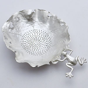 茶玩 水を噴く5匹のカエル ハス 陶磁器製 (実の上)